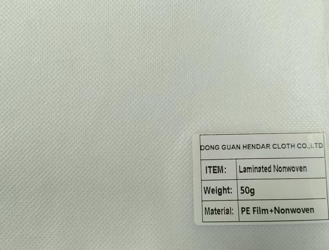 लैमिनेटेड नॉनवॉवन फैब्रिक एक कंपोजिट सामग्री है जो पीपी (पॉलीप्रोपाइलीन) और पीई (पॉलीइथिलीन) जैसी सामग्रियों की फिल्मों को जलरोधक परत के रूप में और उच्च-शक्ति वाले नॉनवॉवन फैब्रिक को एक लैमिनेशन प्रक्रिया के माध्यम से सपोर्टिंग परत के रूप में उपयोग करके बनाई जाती है।